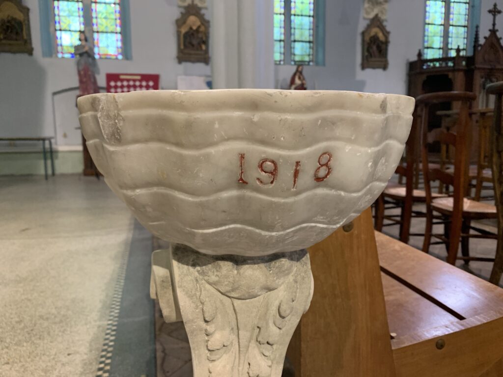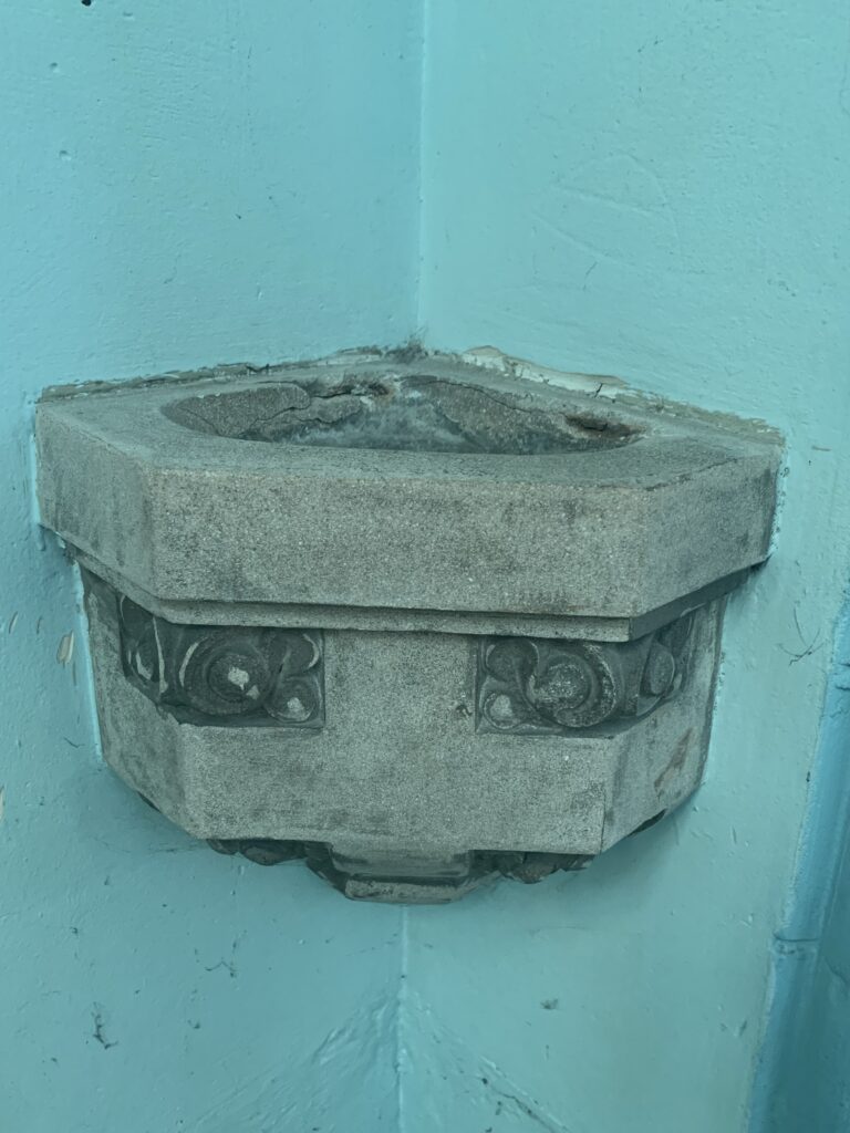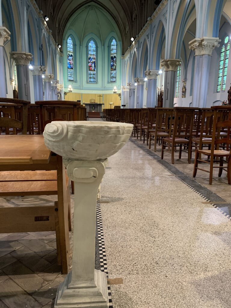 L’eau y rappelle celle de notre baptême, celle dans laquelle nous avons été plongés pour passer avec le Christ de la mort à la vie. Nous pouvons mettre notre main dans le bénitier et faire un beau signe de croix en rappel du jour de notre baptême.