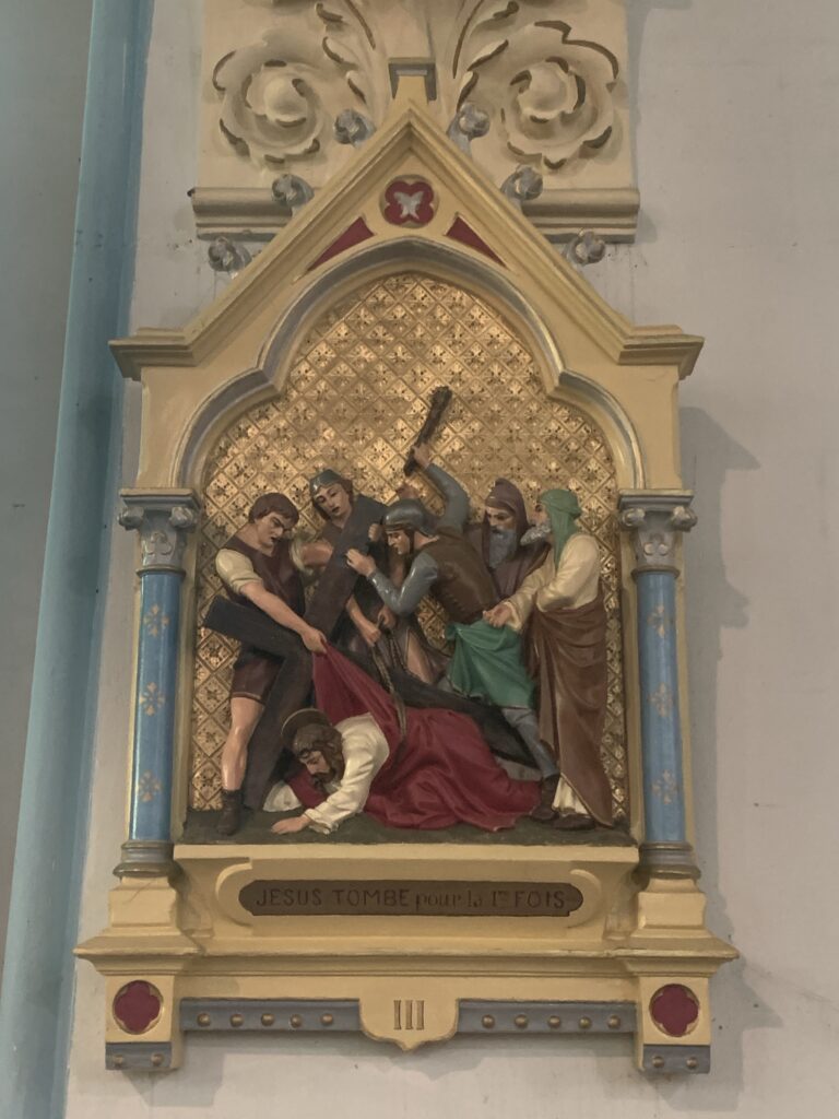 Je te vois, Jésus, souffrant tandis que tu parcours le chemin vers le Calvaire, chargé de notre péché. Et je te vois tomber, les mains et les genoux à terre, douloureux. Avec quelle humilité es-tu tombé ! Quelle humiliation subis-tu en ce moment ! Ta nature de vrai homme se voit clairement en ce fragment de ta vie. La croix que tu portes est lourde ; tu aurais besoin d’aide, mais quand tu tombes à terre, personne ne te secourt, bien plus, les hommes se moquent de toi, ils rient devant l’image d’un Dieu qui tombe. Peut-être sont-ils déçus, peut-être se sont-ils fait une fausse idée de toi. Parfois nous pensons qu’avoir foi en toi signifie ne jamais tomber dans la vie. Avec toi, je tombe, moi aussi, et avec moi, mes idées, celles que j’avais sur toi : comme elles étaient fragiles !