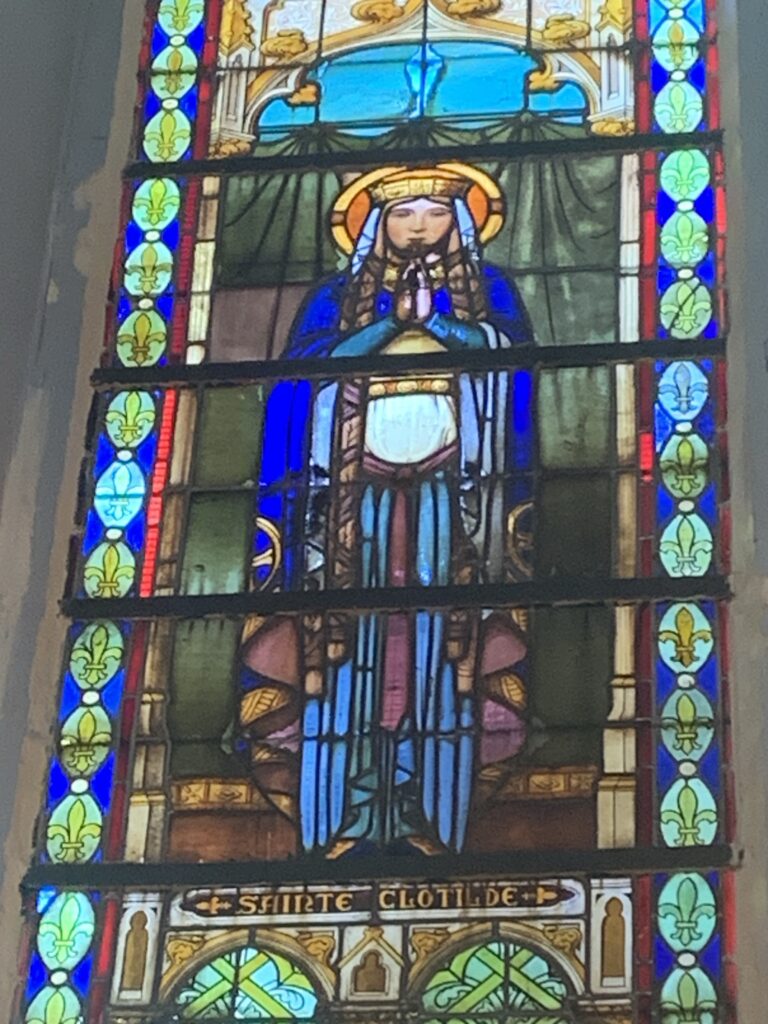 Clotilde joua un rôle important dans la conversion de son mari, avec l’aide de saint Rémi et de sainte Geneviève, la future sainte patronne de Paris. Le tournant majeur dans la conversion du roi des Francs a été la bataille de Tolbiac, en 496. Face à la montée en force des Alamans, Clovis invoqua ses dieux, mais constatant que rien n’y changeait il demanda à sa femme de prier son Dieu, lui promettant de se faire baptiser en cas de victoire : “Ô dieu de Clotilde, donne-moi la victoire et je croirai en toi, je recevrai le baptême”. Triomphant, il honora sa promesse le jour de Noël 496 à Reims, par l’évêque Saint Rémi. Cet événement marqua l’entrée du peuple des Francs dans la religion chrétienne. Veuve à quarante ans, voyant ses fils, violents, se déchirer elle décida de se retirer de la Cour pour trouver du réconfort et la paix près du tombeau de saint Martin de Tours. Elle consacra le reste de sa vie au Christ en demeurant dans le silence et la prière. Elle monta au ciel le 3 juin 545 et fût enterrée aux côtés de son époux et de son amie, Sainte Geneviève.